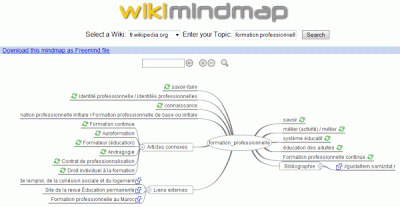 Testez le service : c’est pratique et parlant ! Les résultats de recherche sont traduits en carte mentale, et exportables en format freemind. exemple pour une requête « formation professionnelle » :